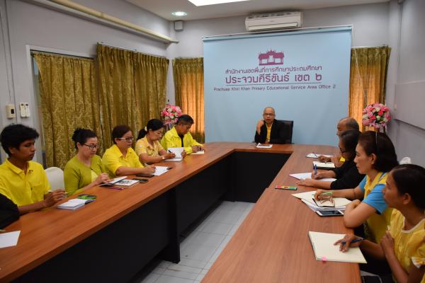 วันที่ 10 พฤษภาคม 2562 เวลา 10.00 น. นายบวร เทศารินทร์ ผู้อำนวยการสำนักงานเขตพื้นที่การศึกษาประถมศึกษาประจวบคีรีขันธ์ เขต 2 เชิญรองผู้อำนวยการสำนักงานเขตพื้นที่การศึกษา และผู้อำนวยการกลุ่ม/หน่วย ในสังกัด ประชุมหารือแนวปฏิบัติราชการและวางแผนการปฏิบัติราชการ เพื่อปฏิบัติตามเป้าหมายและแนวทางของสำนักงานคณะกรรมการการศึกษาขั้นพื้ันฐาน ณ ห้องประชุม Conference ชั้น 2 สำนักงานเขตพื้นที่การศึกษาประถมศึกษาประจวบคีรีขันธ์ เขต 2