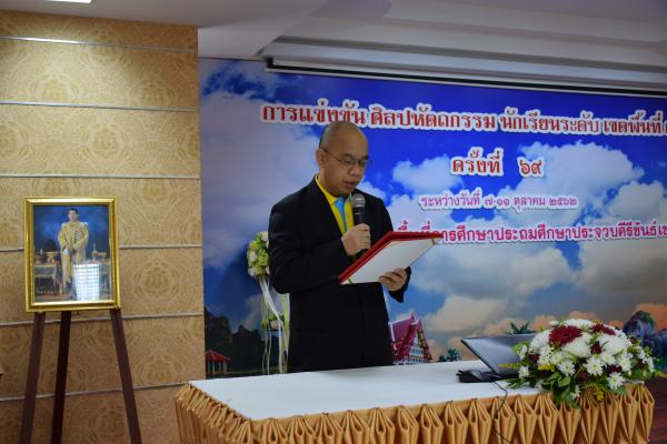 วันที่ 7 ตุลาคม 2562 เวลา 08.30 น. นายบวร เทศารินทร์ ผู้อำนวยการสำนักงานเขตพื้นที่การศึกษาประถมศึกษาประจวบคีรีขันธ์ เขต 2 เป็นประธานพิธีเปิดงานศิลปหัตถกรรมนักเรียน ระดับเขตพื้นที่การศึกษา ครั้งที่ 69 ปีการศึกษา 2562 ณ ห้องประชุมสามพระยา ชั้น 3 สพป.ประจวบคีรีขันธ์ เขต 2