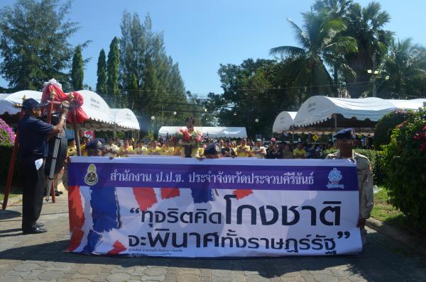 นายสุรินทร์ บัวงาม รอง ผอ.สพป.ปข. 2 พร้อมด้วยนางทัศนีย์ ช่อเทียนทิพย์ ศึกษานิเทศก์ชำนาญการพิเศษ ร่วมงานวันต่อต้านการทุจริตสากล 9 ธันวาคม เพื่อให้ทุกภาคส่วนในสังคมได้ตระหนักถึงพิษภัยร้ายแรงของการทุจริตที่เกิดขึ้นในประเทศไทยที่ผ่านมาว่าได้สร้างความเสียหายอย่างร้ายแรงต่อสภาพเศรษฐกิจ สังคมและการเมืองของประเทศ ทุกภาคส่วนในสังคมจึงควรตื่นตัวรวมพลังกันต่อต้านการทุจริตในทุกรูปแบบ สำนักงาน ป.ป.ช. ประจำจังหวัดประจวบคีรีขันธ์ ได้จัดให้มีการเดินรณรงค์ รวมพลังต่อต้านการทุจริต ในการนี้ สำนักงานเขตพื้นที่การศึกษาประถมศึกษาประจวบคีรีขันธ์ เขต  2 ได้ร่วมจัดนิทรรศการโดยโรงเรียนสุจริต จำนวน 10 โรงเรียน  มีโรงเรียนบ้านลาดวิถี ซึ่งเป็นโรงเรียนต้นแบบและโรงเรียนเครือข่าย 9 โรงเรียนร่วมจัดนิทรรศการโดยมีนายวีระ ศรีวัฒนตระกูล ผู้ว่าราชการจังหวัดประจวบคีรีขันธ์ เป็นประธานในพิธีเปิด อ่านสารของนายปานเทพ กล้ารงค์ราญ ประธานกรรมการ ป.ป.ช. และกล่าวนำคำปฏิญาณการต่อต้านการทุจริตสากล(ประเทศไทย)