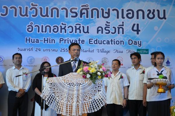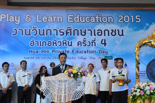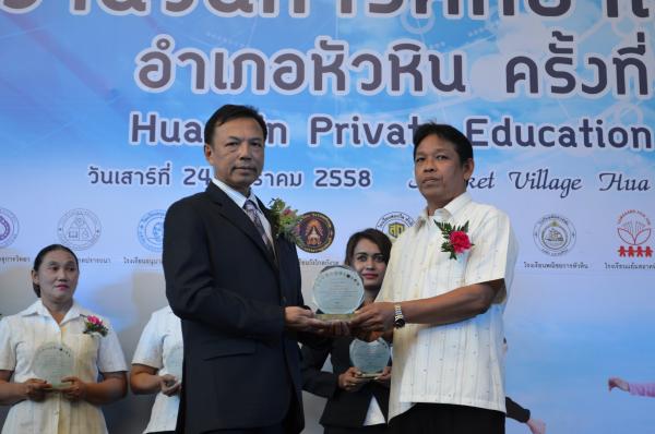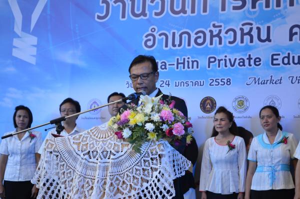 นายสุนาจ แก้วสุข ผอ.สพป.ปข. 2 เป็นประธานเปิดงานวิชาการศึกษาเอกชน อำเภอหัวหิน ครั้งที่ 4 ภายใต้แนวคิด “Play and Learn Education 2015”เกิดจากการรวมกลุ่มของผู้บริหารโรงเรียนเอกชน ของอำเภอหัวหิน จำนวน 12 โรงเรียน เพื่อสร้างความร่วมมือ ร่วมใจ ความรัก ความสามัคคี และรวมเป็นเครือข่ายเพื่อจัดการศึกษาเอกชนได้อย่างมีคุณภาพ และมีมาตรฐาน และเปิดโอกาสให้ผู้บริหาร ครู บุคลากรทางการศึกษา นักเรียน/นักศึกษา ได้มีโอกาสแสดงศักยภาพและผลงาน ให้เป็นที่ประจักษ์แก่ผู้ปกครองและประชาชนทั่วไป เพื่อให้ครูได้มีขวัญ และกำลังใจ เพื่อพัฒนาเยาวชนของของชาติทุกคนทุกระดับให้เจริญเติบโตเป็นพลเมืองดีของชาติต่อไป เนื่องจากวันที่ 10 กุมภาพันธ์ ของทุกปี เป็นวันศึกษาเอกชน และในปีนี้เป็นปีที่ครบรอบ 97 ปี ของการศึกษาเอกชนที่รัฐบาลให้ความสำคัญการศึกษาเอกชน คณะกรรมการผู้บริหารโรงเรียนเอกชน อำเภอหัวหิน จึงได้ร่วมกันจัดงานวิชาการศึกษาเอกชน อำเภอหัวหิน ครั้งที่ 4 ขึ้น ภายใต้แนวความคิด “Play and Learn Education 2015” มีกิจกรรม เช่น สนุกคิดวิทยาศาสตร์ เกมระเบิดปัญญา สามเหลี่ยมกด Recycle การทดลองวิทยาศาสตร์ จัตุรัสอลเวง และ 8 อรหันต์ เป็นต้น และได้มีการยกย่องเชิดชูเกียรติแก่ครูดีศรีเอกชน จำนวน 23 คน จาก 12 โรงเรียน เพื่อเป็นขวัญ กำลังใจ และเป็นแบบอย่างที่ดีแก่ครูและบุคลากร โดยมีโรงเรียนเอกชนในอำเภอหัวหิน จำนวน 12 โรงเรียน เข้าร่วมงาน ณ ศูนย์การค้าหัวหินมาร์เก็ตวิลเลจ อำเภอหัวหิน