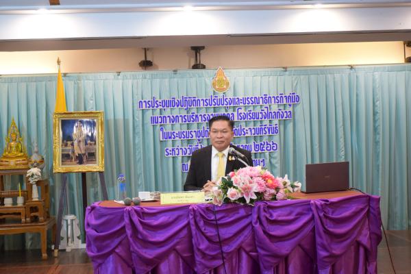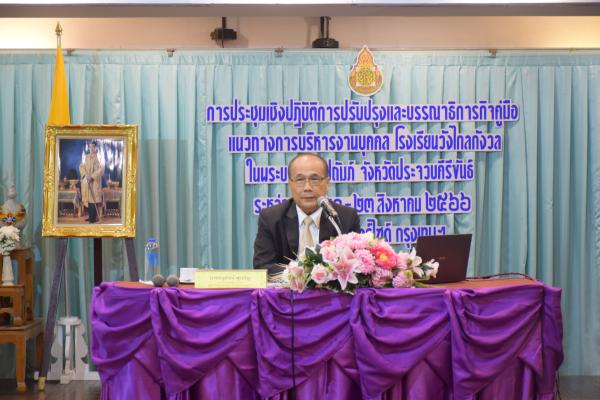 วันจันทร์ที่ 21 สิงหาคม 2566 เวลา 10.00 น. ดร.เฉลิมชนม์ รักลีลาวัฒน์ ผอ.สพป.ประจวบคีรีขันธ์ เขต 2 พร้อมด้วย นางสาวไพลิน เกตุธิโภค ผู้อำนวยการกลุ่มบริหารงานบุคคล ร่วมการประชุมเชิงปฏิบัติการปรับปรุงและบรรณาธิการกิจคู่มือแนวทางการบริหารงานบุคคล โรงเรียนวังไกลกังวล ในพระบรมราชูปถัมภ์ จังหวัดประจวบคีรีขันธ์ ระหว่างวันที่ 21 – 23 สิงหาคม 2566 โดยมี นายอัมพร พินะสา เลขาธิการคณะกรรมการการศึกษาขั้นพื้นฐาน เป็นประธาน ณ ห้องไกรทอง โรงแรมริเวอร์ไซด์ กรุงเทพมหานคร