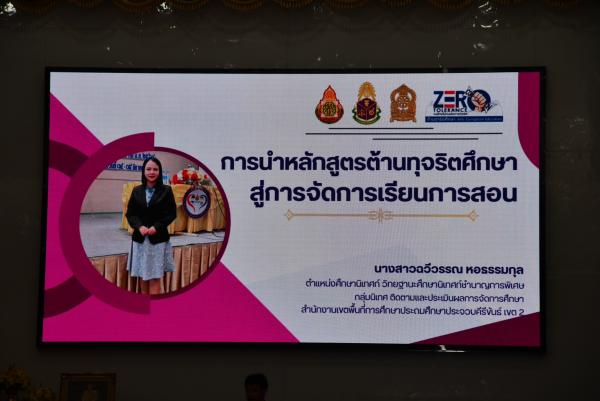 วันอังคารที่ 25 มีนาคม 2568 นายสุรชาติ การสอาด ผู้อำนวยการสำนักงานเขตพื้นที่การศึกษาประถมศึกษาประจวบคีรีขันธ์ เขต 2 มอบหมายให้ นางสาวฉวีวรรณ หอธรรมกุล ศึกษานิเทศก์ชำนาญการพิเศษ , นางปุณณภัสสร์ สุขเจริญ ศึกษานิเทศก์ชำนาญการพิเศษ และนายอุเทน สุขสิงห์ ศึกษานิเทศก์ชำนาญการพิเศษ เป็นวิทยากรหลักสูตรต้านทุจริตศึกษา (หลักสูตรการศึกษาชั้นพื้นฐาน) ในการอบรมเชิงปฏิบัติการ การนำหลักสูตรต้านทุจริตศึกษาสู่การจัดการเรียนการสอน ณ หอประชุมพระเทพสิทธิวิมลเมตตา โรงเรียนประจวบวิทยาลัย สพม.ประจวบคีรีขันธ์