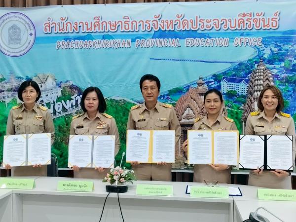 วันจันทร์ที่ 28 เมษายน 2568 นายสุรชาติ การสอาด ผู้อำนวยการสำนักงานเขตพื้นที่การศึกษาประถมศึกษาประจวบคีรีขันธ์ เขต 2 มอบหมายให้ นางสาวรุ่งกานต์ สืบสุทธา รองผู้อำนวยการสำนักงานเขตพื้นที่การศึกษาประถมศึกษาประจวบคีรีขันธ์ เขต 2 ร่วมลงนามบันทึกความเข้าใจ (MOU) กรอบความร่วมมือการส่งเสริมและสนับสนุนจากองค์กรปกครองส่วนท้องถิ่น ของสถานศึกษาในสังกัดสำนักงานคณะกรรมการการศึกษาขั้นพื้นฐานจังหวัดประจวบคีรีขันธ์ ณ ห้องประชุมสำนักงานศึกษาธิการจังหวัดประจวบคีรีขันธ์ อำเภอเมืองประจวบคีรีขันธ์ จังหวัดประจวบคีรีขันธ์