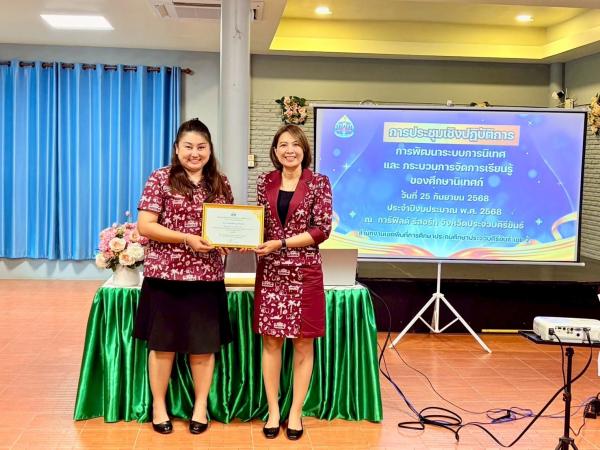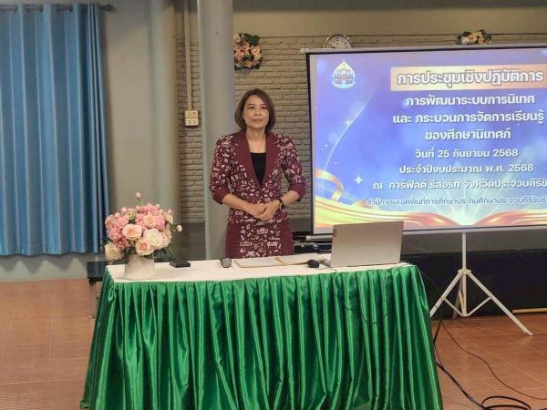 วันพฤหัสบดีที่ 25 กันยายน 2568 นายสุรชาติ การสอาด ผู้อำนวยการสำนักงานเขตพื้นที่การศึกษาประถมศึกษาประจวบคีรีขันธ์ เขต 2 มอบหมายให้ นางสาวรุ่งกานต์ สืบสุทธา รองผู้อำนวยการสำนักงานเขตพื้นที่การศึกษาประถมศึกษาประจวบคีรีขันธ์ เขต 2 เป็นประธาน การประชุมเชิงปฏิบัติการพัฒนาระบบการนิเทศ และกระบวนการจัดการเรียนรู้ ให้กับศึกษานิเทศก์ในสังกัด และมอบรางวัลนวัตกรรมการนิเทศการศึกษาระดับดีเยี่ยม ให้แก่ ศึกษานิเทศก์ทั้ง 3 ท่าน ได้แก่ 1.นางสาวนุ่นนภา เหล่าเจริญ 2.นางสาววาสนา ยาวงษ์ 3.นางสาวสิริญา จิตวัฒนาธรรม และศึกษานิเทศเข้าร่วมการอบรมการประชุมเชิงปฏิบัติการพัฒนาระบบการนิเทศ และกระบวนการจัดการเรียนรู้ โดยท่านวิทยากร นายมานิตย์ สีสง่า และนางนิตยา โรจน์บวรวิทยา เป็นคณะวิทยากรอบรม ณ การ์ฟิลด์ รีสอร์ท อำเภอสามร้อยยอด จังหวัดประจวบคีรีขันธ์