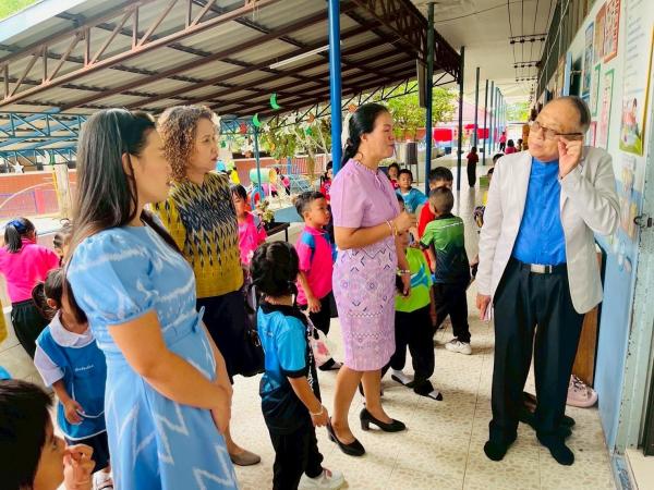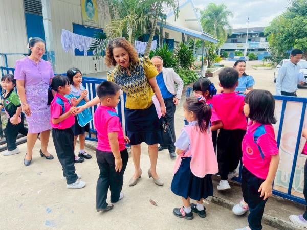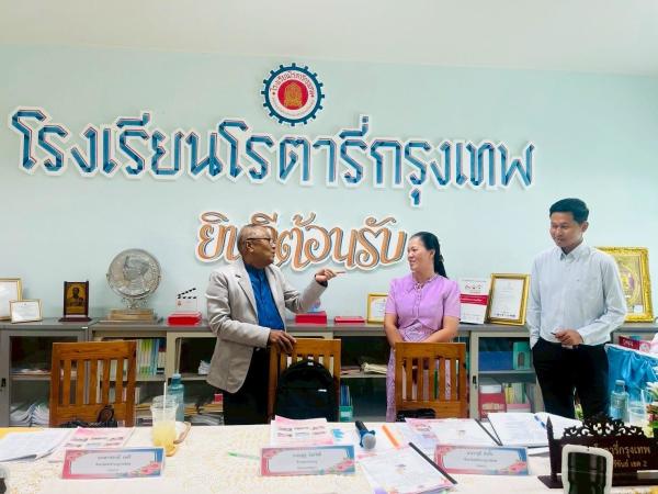 วันศุกร์ที่ 26 กันยายน 2568 นายสุรชาติ การสอาด ผู้อำนวยการสำนักงานเขตพื้นที่การศึกษาประถมศึกษาประจวบคีรีขันธ์ เขต 2 มอบหมายให้ นางสาวปราณี จงศรี ศึกษานิเทศก์ชำนาญการพิเศษ พร้อมด้วย นางวารุณี สังเกื้อ ศึกษานิเทศก์ชำนาญการพิเศษ และนายบุญชู อังสวัสดิ์ ข้าราชการบำนาญ ออกประเมินสถานศึกษาเครือข่ายเพื่อยกระดับเป็นสถานศึกษาต้นแบบโครงการปลูกพลังบวกเพื่อสร้างจิตสำนึกภูมิคุ้มกันปัจจัยเสี่ยง(เหล้า-บุหรี่) สู่สุขภาวะที่ดีของเด็กปฐมวัย ปี 2568 ณ โรงเรียนโรตารี่กรุงเทพ อำเภอหัวหิน จังหวัดประจวบคีรีขันธ์