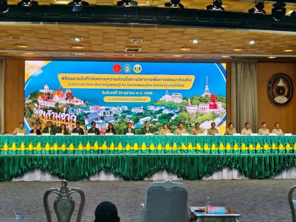 วันจันทร์ที่ 20 ตุลาคม 2568 นายสุรชาติ การสอาด ผู้อำนวยการสำนักงานเขตพื้นที่การศึกษาประถมศึกษาประจวบคีรีขันธ์ เขต 2 ร่วมพิธีลงนามบันทึกข้อตกลงความร่วมมือทางวิชาการเพื่อการพัฒนาท้องถิ่น ระหว่าง มหาวิทยาลัยราชภัฏเพชรบุรี กับ จังหวัดเพชรบุรีและจังหวัดประจวบคีรีขันธ์ ณ มหาวิทยาลัยราชภัฏเพชรบุรี อำเภอเมือง จังหวัดเพชรบุรี