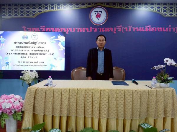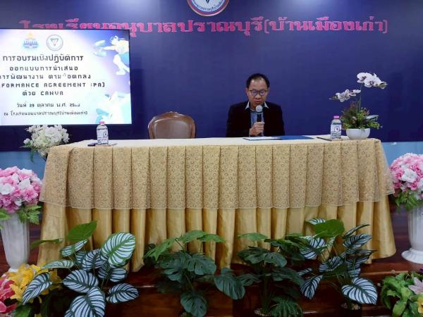 วันพุธที่ 29 ตุลาคม 2568 นายสุรชาติ การสอาด ผู้อำนวยการสำนักงานเขตพื้นที่การศึกษาประถมศึกษาประจวบคีรีขันธ์ เขต 2 เป็นประธาน พิธีเปิดการอบรม "ออกแบบการนำเสนอ การพัฒนางานตามข้อตกลง (Performance Agreement : PA) ด้วย CANVA ณ โรงเรียนอนุบาลปราณบุรี (บ้านเมืองเก่า) อำเภอปราณบุรี จังหวัดประจวบคีรีขันธ์