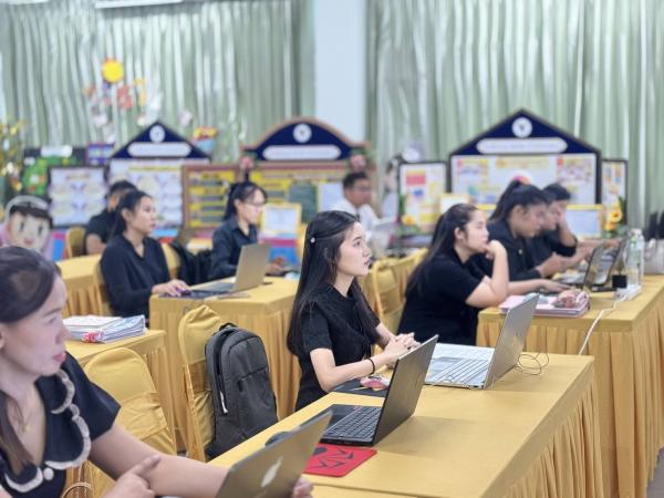 วันพุธที่ 29 ตุลาคม 2568 นายสุรชาติ การสอาด ผู้อำนวยการสำนักงานเขตพื้นที่การศึกษาประถมศึกษาประจวบคีรีขันธ์ เขต 2 มอบหมายให้ นางสาวปราณี จงศรี ศึกษานิเทศก์ชำนาญการพิเศษ , นางศิรินุช ชูกุศล , นางสาวสิริญา จิตวัฒนาธรรม ศึกษานิเทศก์ชำนาญการพิเศษ , นางสาววาสนา ยาวงษ์ ศึกษานิเทศก์ชำนาญการพิเศษ , นางสาวเพชรลัดดา คูหาเปี่ยมสุข ศึกษานิเทศก์ชำนาญการพิเศษ , นางวารุณี สังเกื้อ ศึกษานิเทศก์ชำนาญการพิเศษ และนางสาวนุ่นนภา เหล่าเจริญ ศึกษานิเทศก์ชำนาญการ เป็นวิทยากร การประชุมเชิงปฏิบัติการเพิ่มประสิทธิภาพการปฏิบัติงานของข้าราชการครูและบุคลากรทางการศึกษาของโรงเรียนอนุบาลหัวหิน (บ้านหนองขอน) เพื่อให้ความรู้เกี่ยวกับการออกแบบกระบวนการเรียนรู้ตามหลักสูตรการศึกษาประถมศึกษาตอนต้น (ชั้นประถมศึกษาปีที่ 1 - 3) พุทธศักราช 2568 ณ โรงเรียนอนุบาลหัวหิน (บ้านหนองขอน) อำเภอหัวหิน จังหวัดประจวบคีรีขันธ์