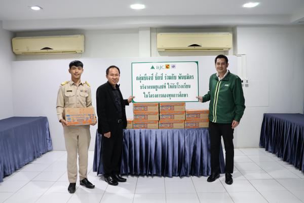 วันจันทร์ที่ 3 พฤศจิกายน 2568 นายสุรชาติ การสอาด ผู้อำนวยการสำนักงานเขตพื้นที่การศึกษาประถมศึกษาประจวบคีรีขันธ์ เขต 2 ร่วมกิจกรรมการมอบนมยูเอชที จากกลุ่มบีเจซี บิ๊กซี ให้กับโรงเรียนกองทุนการศึกษาในสังกัด จำนวน 3 โรงเรียน ได้แก่ โรงเรียนบ้านห้วยไคร้ โรงเรียนอานันท์ และโรงเรียนวไลย ณ ห้องประชุมเขาเขียว สพป.ประจวบคีรีขันธ์ เขต 2