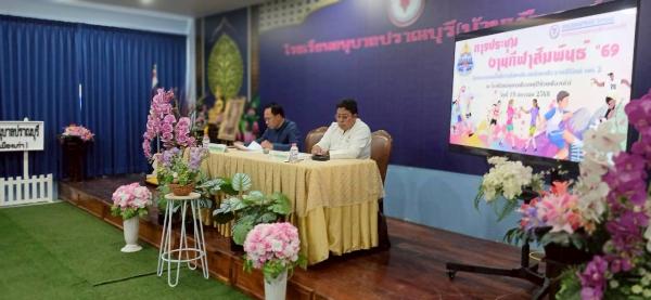 วันศุกร์ที่ 19 ธันวาคม 2568 นายสุรชาติ การสอาด ผู้อำนวยการสำนักงานเขตพื้นที่การศึกษาประถมศึกษาประจวบคีรีขันธ์ เขต 2 พร้อมด้วย นายสมควร รัชตวิมล รองผู้อำนวยการสำนักงานเขตพื้นที่การศึกษาประถมศึกษาประจวบคีรีขันธ์ เขต 2 , ผู้อำนวยการกลุ่มส่งเสริมการจัดการศึกษา และผู้อำนวยการกลุ่มอำนวยการ ร่วมการประชุมการจัดงาน "ปีใหม่สัมพันธ์" ประจำปี พ.ศ.2569 ณ ห้องประชุมนพรัตน์ โรงเรียนอนุบาลปราณบุรี (บ้านเมืองเก่า) อำเภอปราณบุรี จังหวัดประจวบคีรีขันธ์