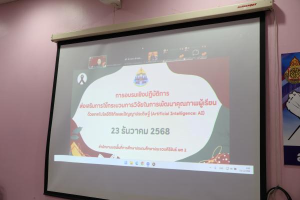 วันอังคารที่ 23 ธันวาคม 2568 นายสุรชาติ การสอาด ผู้อำนวยการสำนักงานเขตพื้นที่การศึกษาประถมศึกษาประจวบคีรีขันธ์ เขต 2 เป็นประธาน พิธีเปิดการอบรมเชิงปฏิบัติการส่งเสริมการใช้กระบวนการวิจัยในการพัฒนาคุณภาพผู้เรียน ด้วยเทคโนโลยีดิจิทัลและปัญญาประดิษฐ์ (Artificial Intelligence: AI) ผ่านระบบออนไลน์ โดยมีวัตถุประสงค์ ดังนี้ 1)เพื่อพัฒนาความรู้ ความเข้าใจของครูและบุคลากรทางการศึกษา ในการใช้กระบวนการวิจัยเป็นเครื่องมือในการพัฒนาคุณภาพผู้เรียน 2) เพื่อส่งเสริมการบูรณาการเทคโนโลยีดิจิทัลและปัญญาประดิษฐ์ (AI) ในการจัดการเรียนรู้การวิจัยในชั้นเรียน และการประเมินผลอย่างมีประสิทธิภาพ ในการนี้ได้รับเกียรติจาก ดร.จันทรา ด่านคงรักษ์ เป็นวิทยากรผู้ทรงคุณวุฒิ ณ ห้องประชุมท้าวโกษา สพป.ประจวบคีรีขันธ์ เขต 2
