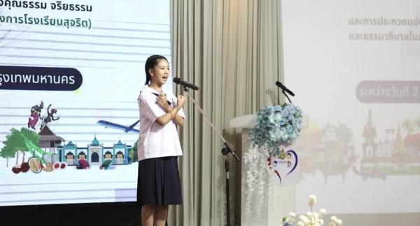 วันจันทร์ที่ 2 กุมภาพันธ์ 2569 นายทนงศักดิ์ คงเจริญสุข ผู้อำนวยการสำนักงานเขตพื้นที่การศึกษาประถมศึกษาประจวบคีรีขันธ์ เขต 2 มอบหมายให้ นางปุณณภัสสร์ สุขเจริญ ศึกษานิเทศก์ชำนาญการพิเศษ และนางสาวสกุณา เรืองทิพย์ ศึกษานิเทศก์ชำนาญการ ร่วมการแลกเปลี่ยนเรียนรู้ การนำเสนอผลงาน และการประกวดแข่งขัน กิจกรรมการเรียนรู้ภายใต้โครงการเสริมสร้างคุณธรรม จริยธรรม และธรรมาภิบาลในสถานศึกษาและสำนักงานเขตพื้นที่การศึกษา (โครงการโรงเรียนสุจริต) ประจำปีงบประมาณ พ.ศ. 2568 ระดับประเทศ โดยมีโรงเรียนบ้านหนองตะเภา เป็นตัวแทนในการแข่งขันกิจกรรมบริษัทสร้างการดี ระดับประถมศึกษา ในการนี้ ดร.พิเชฐ โพธิ์ภักดี เลขาธิการคณะกรรมการการศึกษาขั้นพื้นฐาน (กพฐ.) เป็นประธานในพิธี ณ โรงแรมเอวาน่า กรุงเทพมหานคร