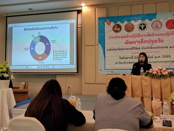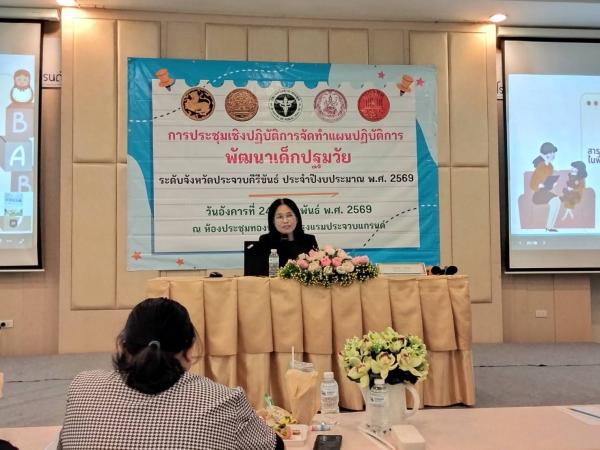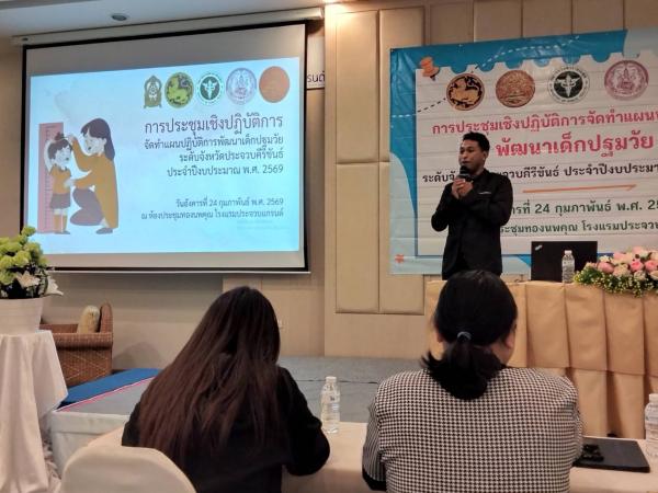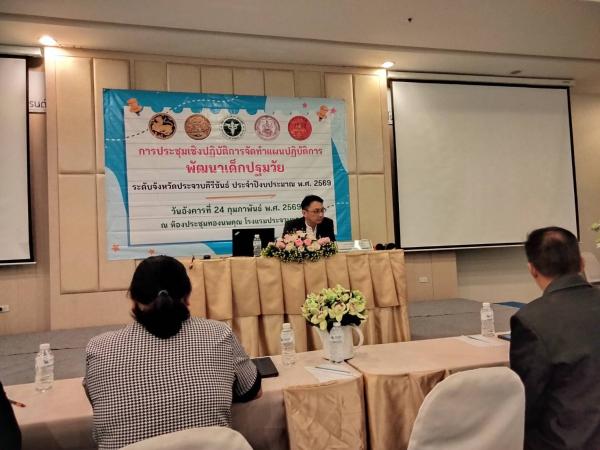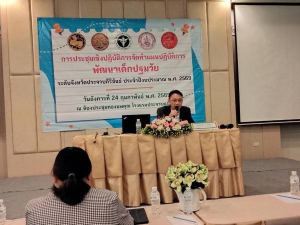 วันอังคารที่ 24 กุมภาพันธ์ 2569 นายทนงศักดิ์ คงเจริญสุข ผู้อำนวยการสำนักงานเขตพื้นที่การศึกษาประถมศึกษาประจวบคีรีขันธ์ เขต 2 มอบหมายให้ นางสาวรุ่งกานต์ สืบสุทธา รอง ผู้อำนวยการสำนักงานเขตพื้นที่การศึกษาประถมศึกษาประจวบคีรีขันธ์ เขต 2 และนางสาวเพชรลัดดา คูหาเปี่ยมสุข ศึกษานิเทศก์ชำนาญการพิเศษ ร่วมการประชุมเชิงปฏิบัติการจัดทำแผนปฏิบัติการพัฒนาเด็กปฐมวัย จังหวัดประจวบคีรีขันธ์ ประจำปีงบประมาณ พ.ศ.2569 ณ ห้องประชุมทองนพคุณ โรงแรมประจวบแกรนด์ อำเภอเมืองประจวบคีรีขันธ์ จังหวัดประจวบคีรีขันธ์