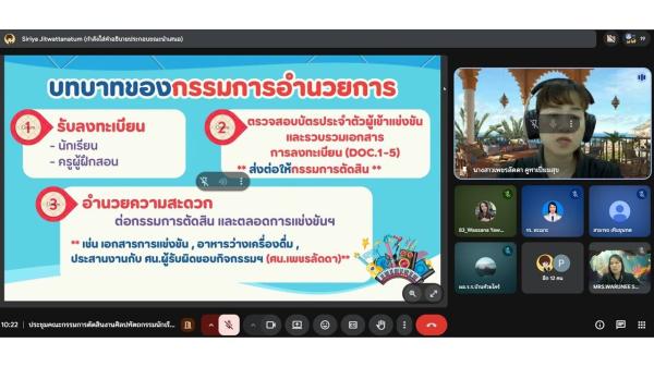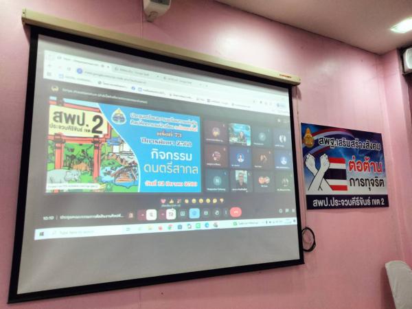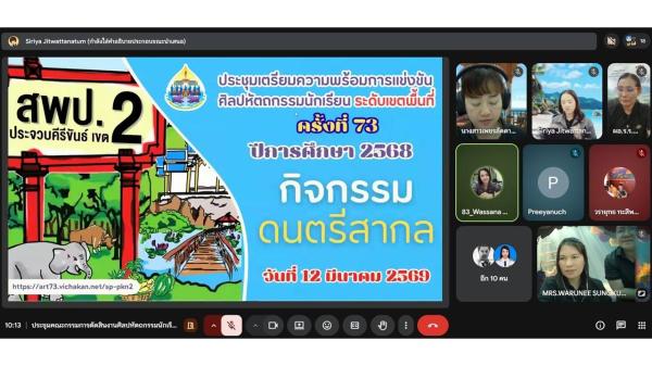 วันพฤหัสบดีที่ 12 มีนาคม 2569 สำนักงานเขตพื้นที่การศึกษาประถมศึกษาประจวบคีรีขันธ์ เขต 2 ดำเนินการจัดการประชุมคณะกรรมการอำนวยการและคณะกรรมการตัดสินการแข่งขันศิลปหัตถกรรมนักเรียน ครั้งที่ 73 ปีการศึกษา 2568 กิจกรรมดนตรีสากล ผ่านระบบออนไลน์ (Google Meet)