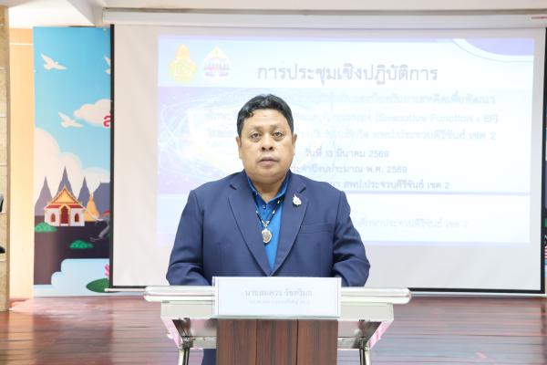 วันศุกร์ที่ 13 มีนาคม 2569 นายทนงศักดิ์ คงเจริญสุข ผู้อำนวยการสำนักงานเขตพื้นที่การศึกษาประถมศึกษาประจวบคีรีขันธ์ เขต 2 มอบหมายให้ นายสมควร รัชตวิมล รองผู้อำนวยการสำนักงานเขตพื้นที่การศึกษาประถมศึกษาประจวบคีรีขันธ์ เขต 2 เป็นประธาน พิธีเปิดการประชุมเชิงปฏิบัติการขับเคลื่อนการสร้างภูมิคุ้มกันและป้องกันยาเสพติดเพื่อพัฒนาทักษะชีวิต และการพัฒนาทักษะสมอง (Executive Function : EF) ในสถานศึกษา สังกัดสำนักงานเขตพื้นที่การศึกษาประถมศึกษาประจวบคีรีขันธ์ เขต 2 เพื่อส่งเสริมการพัฒนากระบวนการจัดการเรียนรู้ ที่สามารถสร้างภูมิคุ้มกันและป้องกันยาเสพติด การพัฒนาทักษะสมอง (Executive Function: EF) ในระดับ ชั้นประถมศึกษาปีที่ 1 – 3 ณ ห้องประชุมสามพระยา สพป.ประจวบคีรีขันธ์ เขต 2