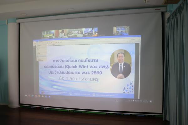 วันจันทร์ที่ 16 มีนาคม 2569 นายทนงศักดิ์ คงเจริญสุข ผู้อำนวยการสำนักงานเขตพื้นที่การศึกษาประถมศึกษาประจวบคีรีขันธ์ เขต 2 พร้อมด้วย นางสาวรุ่งกานต์ สืบสุทธา รองผู้อำนวยการสำนักงานเขตพื้นที่การศึกษาประถมศึกษาประจวบคีรีขันธ์ เขต 2 , นายศาสตรา สายสุนันทรารมย์ รองผู้อำนวยการสำนักงานเขตพื้นที่การศึกษาประถมศึกษาประจวบคีรีขันธ์ เขต 2 และผู้เกี่ยวข้อง ร่วมการประชุมชี้แจงแนวทางลดภาระงานครู ตามนโยบายระยะเร่งด่วน (Quick Win) ของสำนักงาน คณะกรรมการการศึกษาขั้นพื้นฐาน ประจำปีงบประมาณ พ.ศ. 2569 ณ ห้องประชุมพระยานคร สพป.ประจวบคีรีขันธ์ เขต 2